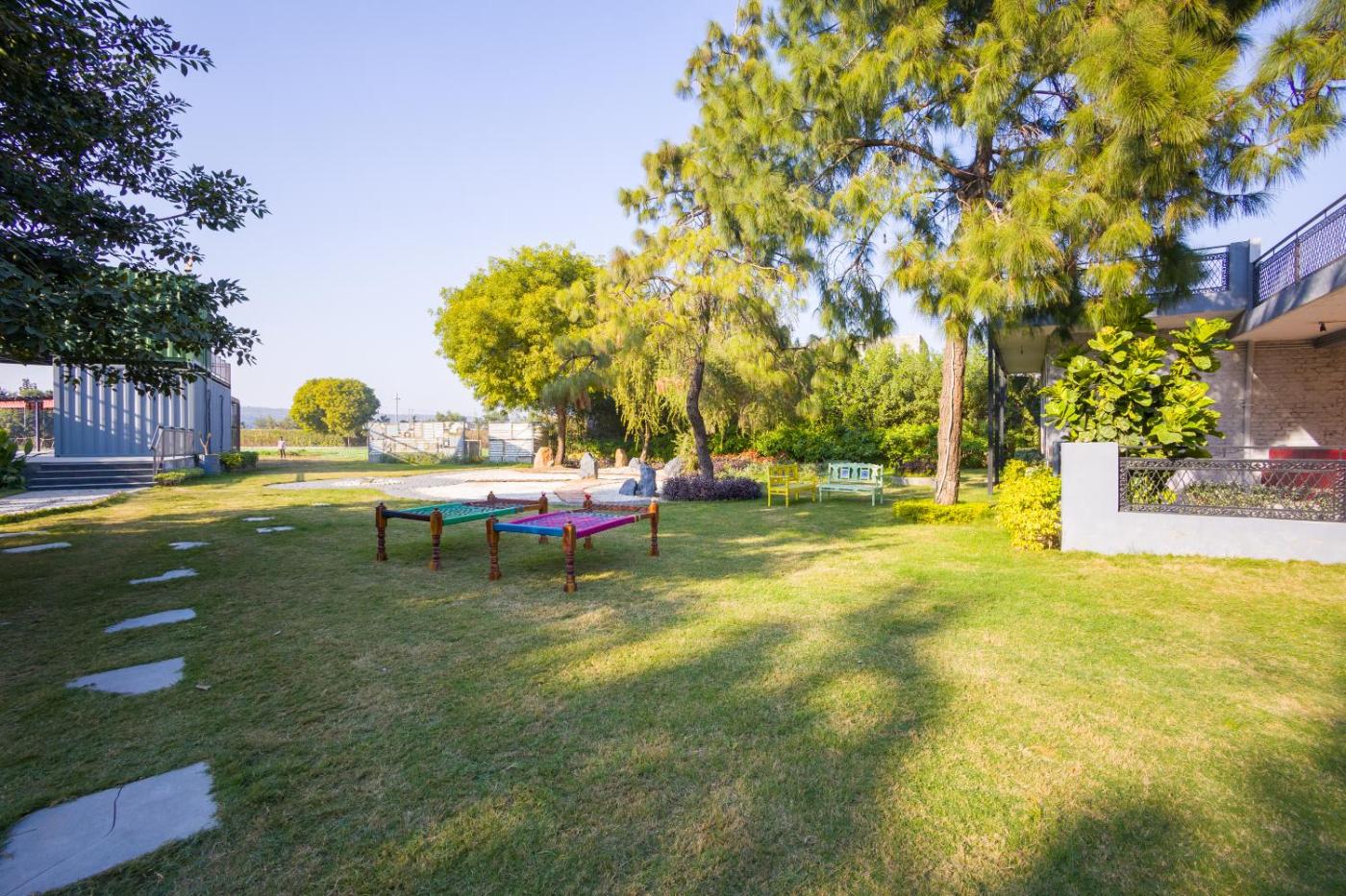 Tughlaqabad Fort is 28 km from ELIVAAS Hidden Oasis 4BHK with Pool, Mud House & Container House, while MG Road is 29 km from the property. Delhi International Airport is 35 km away.