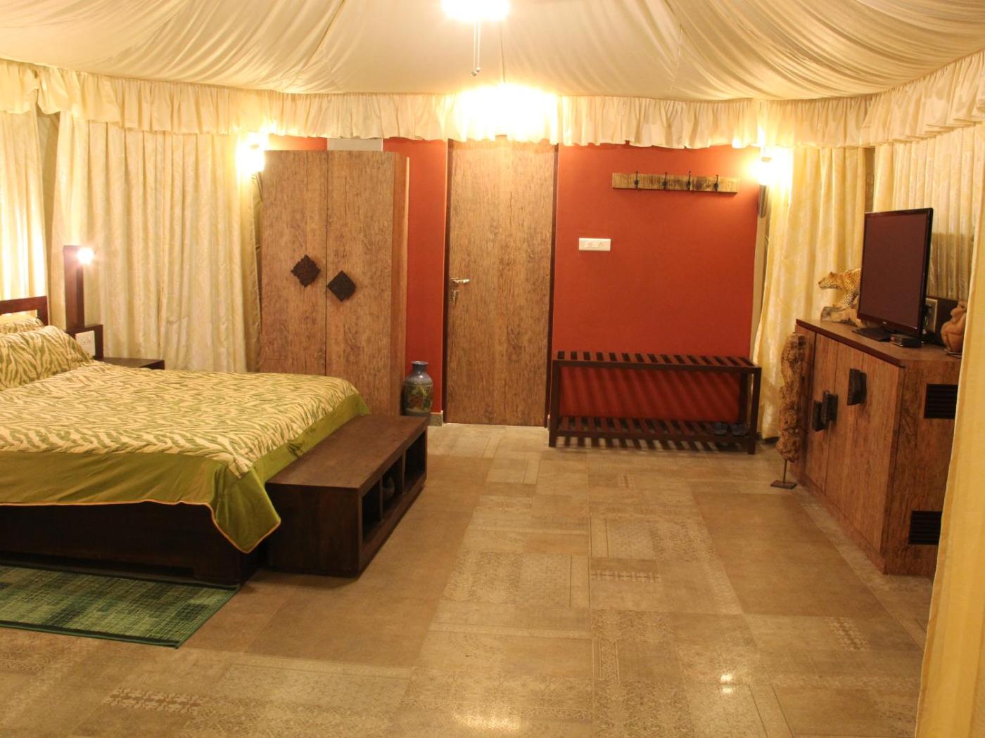 Luxury Tent. The fireplace is a top feature of this tent. Featuring free toiletries, this tent includes a private bathroom with a bath, a shower and a hairdryer. The air-conditioned tent features a flat-screen TV with cable channels, a private entrance, a minibar, a coffee machine as well as garden views. The unit has 1 bed. ;